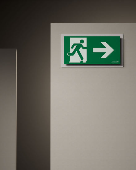 La gráfica de los elementos de señalización de emergencia se imprime con tintas fotoluminiscentes homologadas. Este tipo de tinta está compuesto por pigmentos activos que se cargan con la exposición a la luz. Es posible que puedan existir diferencias de tonalidad en los pigmentos fotoluminiscentes dependiendo de factores ambientales, de exposición y entre distintos lotes de impresión. Este posible efecto no minimiza el cumplimiento de los estándares requeridos en las normas vigentes UNE 23033-2019 y UNE 23034:2023 para señalización PCI y de evacuación categoría A que ofrece la señalización de emergencia de Signes.