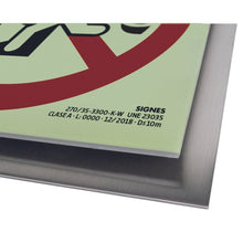 La gráfica de los elementos de señalización de emergencia se imprime con tintas fotoluminiscentes homologadas. Este tipo de tinta está compuesto por pigmentos activos que se cargan con la exposición a la luz. Es posible que puedan existir diferencias de tonalidad en los pigmentos fotoluminiscentes dependiendo de factores ambientales, de exposición y entre distintos lotes de impresión. Este posible efecto no minimiza el cumplimiento de los estándares requeridos en las normas vigentes UNE 23033-2019 y UNE 23034:1988 para señalización PCI y de evacuación categoría A que ofrece la señalización de emergencia de Signes.